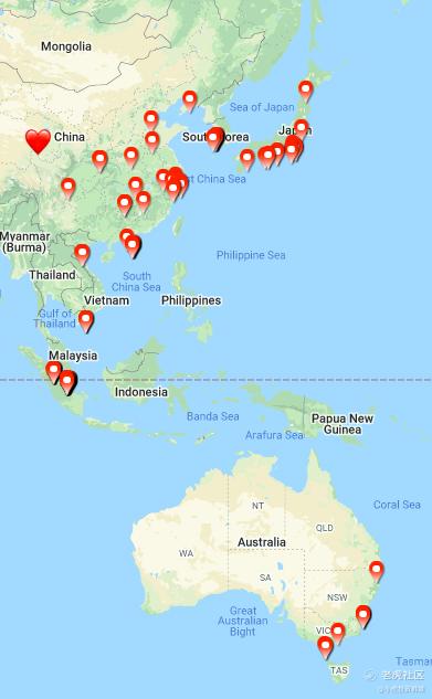 那新加坡是豐樹的最大的市場,在新加坡豐樹持有52個物流中心和倉庫,但是公司也在馬來西亞,澳洲,越南,中國,日本,和韓國有房產。以下地圖顯示豐樹的物流中心處於哪一些國家: