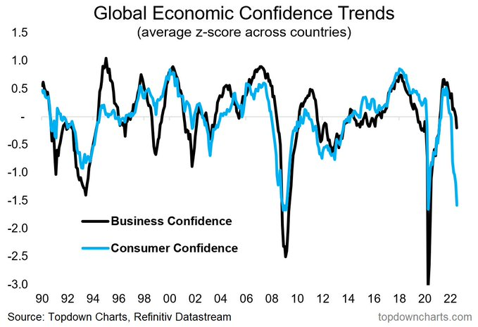 $S&P 500(.SPX)$ Consumer confidence has collapsed all around the world this year, nearly matching the pace and magnitude of the drops seen during the global financial crisis and pandemic panic.