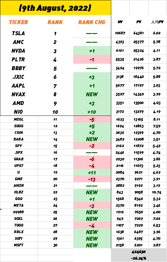 ⭐For The Daily Most Active Stocks in S&P 500 & The Top 10 Popular Stcocks on WallStreetBets please turn to@TigerObserver