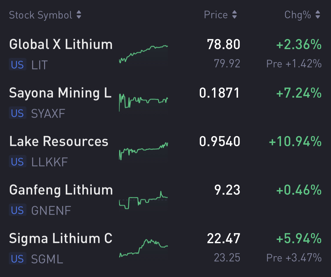 Besides Ganfeng Lithium, all lithium stocks on my watch-list rose between 3.77% to 10.94% signifying that investorsβ POV towards lithium stocks are bullish.