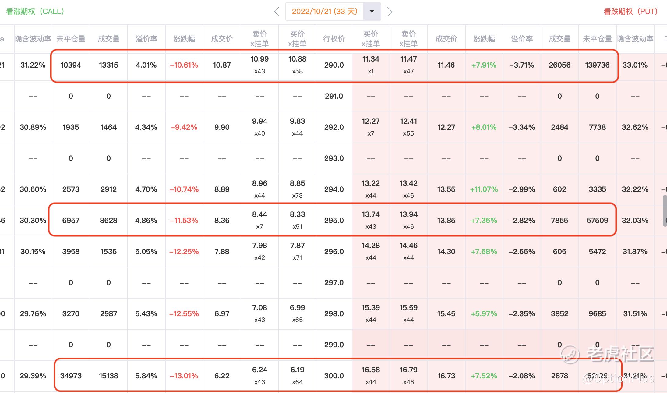 On the Call side, there are over 10,000 contracts in the strike of $290, and 35,000 contracts in the strike of $300, which are relatively large positions, but they are in no way comparable to 100,000 PUTs.