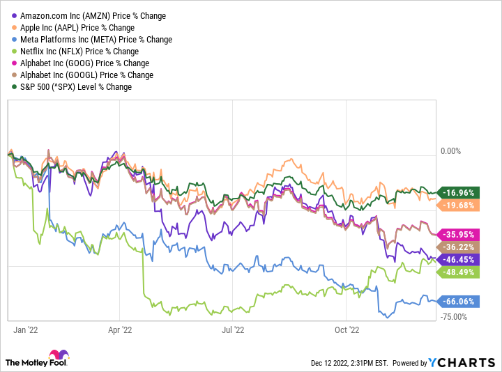 Growth-oriented tech stocks have taken it on the chin lately, and even some of the most prominent of the bunch haven't escaped unscathed. That includes the tech giants typically referred to by the acronym "FAANG." This group includesMeta Platforms -- Facebook's parent company --Apple,Amazon(AMZN-0.98%),Netflix, andAlphabet, which runs the search engine Google.
