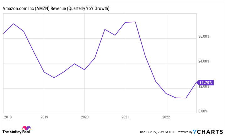 These issues are also impacting Amazon's otherwise high-flying cloud unit, Amazon Web Services (AWS). The company reported that many businesses are rethinking their spending, which sometimes leads them to scale back their cloud-related expenses. Amazon is feeling the effect of these dynamics. In the third quarter, the company's total net sales jumped by 15% year over year to $127.1 billion.