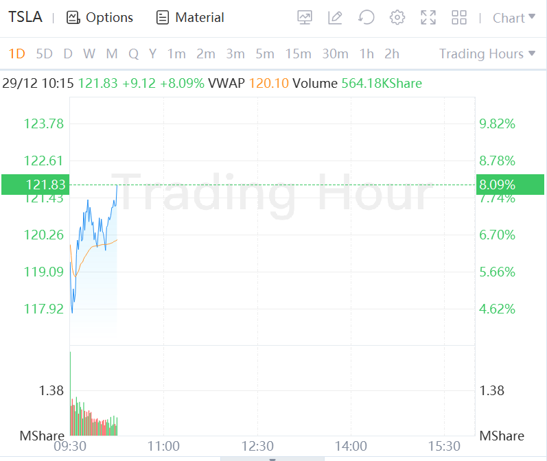 $Tesla(TSLA)$ stock jumped over 8% in morning trading as Morgan Stanley analyst Adam Jonas told clients that the company is still set to lead the EV industry in 2023.
