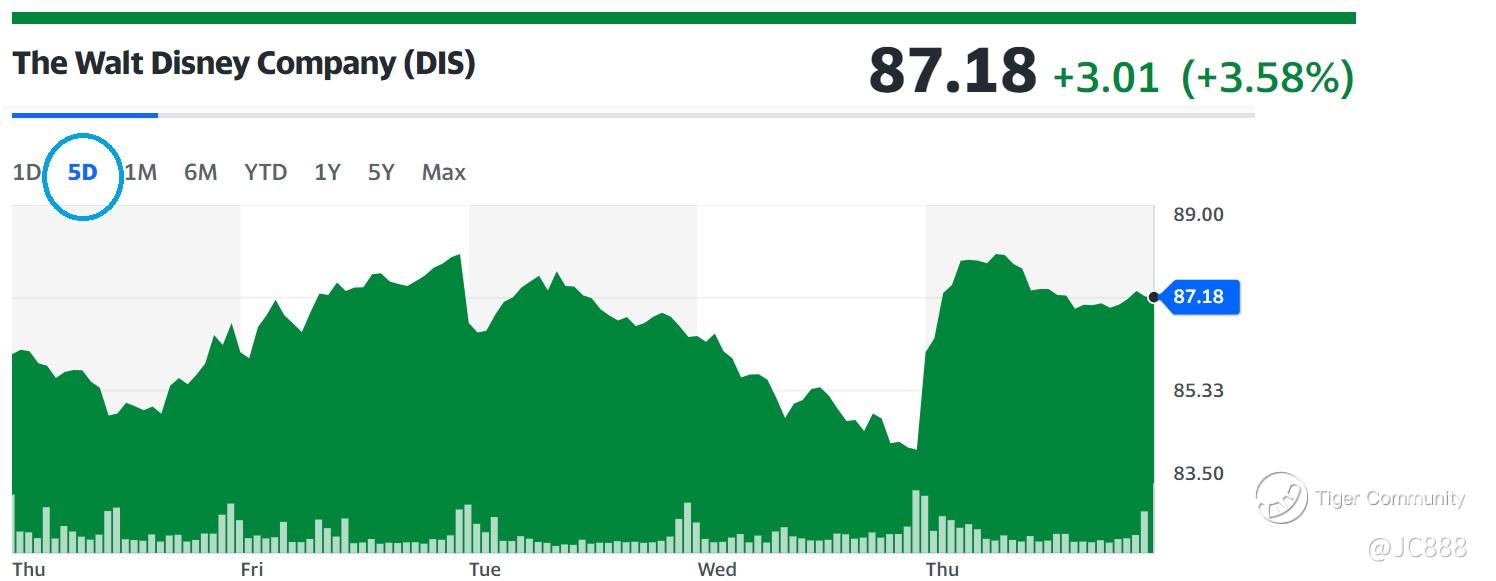 $Walt Disney(DIS)$ {the other component stock of DJIA} rallied +4.5% ytd morning, leading all other Dow index performers and helped to pull DJIA up momentarily.