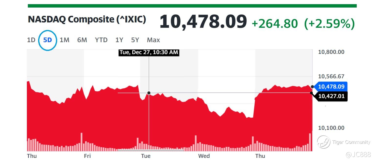 If you refer to $NASDAQ(.IXIC)$ past 5 days performances, you would've realized that Thu's closing was where Nasdaq was on Tue (27 Dec).