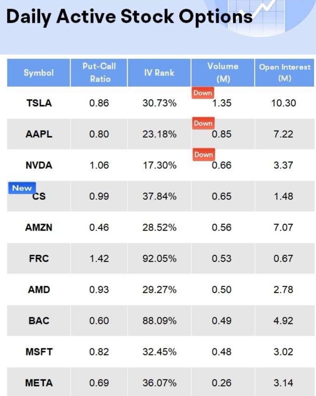 $Credit Suisse Group AG(CS)$ shares tumbled 52.99%, 5 times its 30-day average volume, and calls accounted for 50.2%.