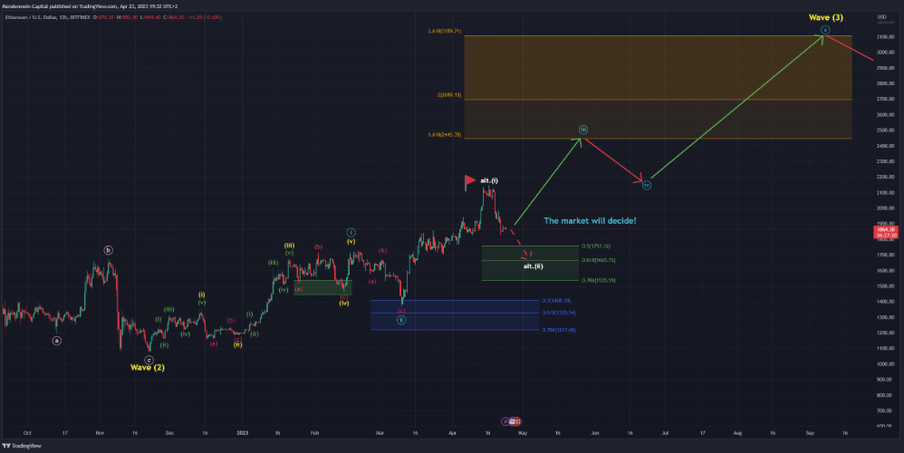 Let me be clear with this one, a continuation of our projected blue wave (iii) is very unlikely and the market will establish another alt.(ii) as we highlighted extensively in the past weeks. We will update this situation in more detail in our next Wednesday update. Ultimately, even if we see lower prices in the short term, our long term outlook remains extremely bullish and this situation doesn’t change anything about prices of 8’000$ in the future.