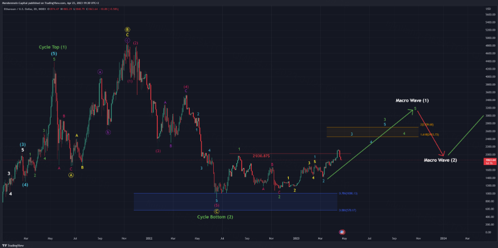A new retracement zone (green) is marked on the chart, and we are planning on accumulating further positions as soon as Ethereum should enter this zone. The crash of the past days has been quite troublesome for short-term oriented investors, but we at Mendenmein Capital are focusing on the upcoming cycle bull run, so we aren’t worried about slightly declining prices.