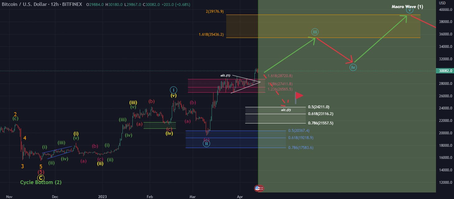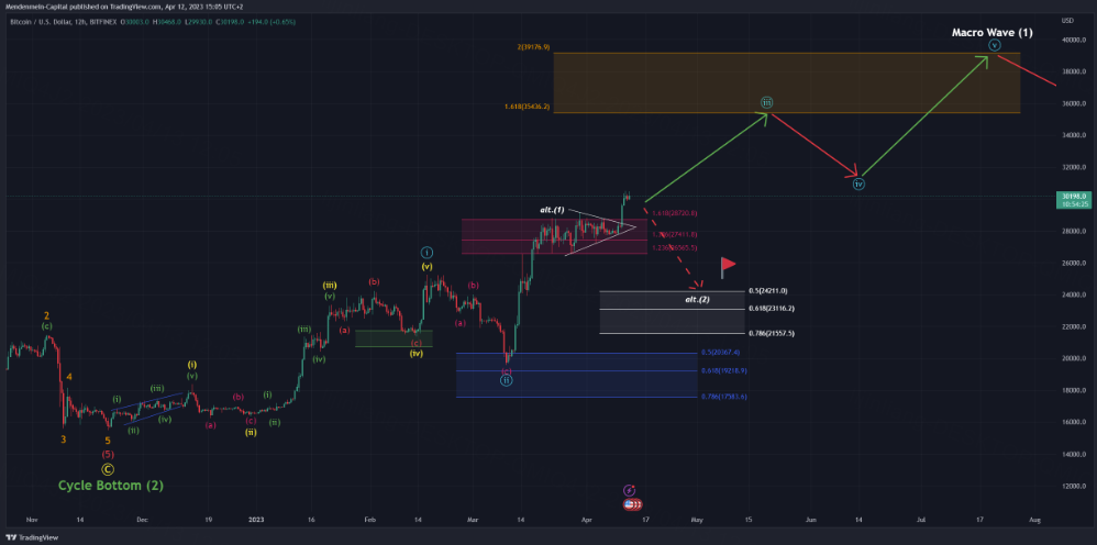 At the moment, the markets are reacting in a good way to this surprise, but I am not convinced yet that they can extend these gains in the upcoming hours. Our primary goal of wave (iii) at 35’436$ is still active, and we expect that bitcoin could hit this important level by the end of this month.We have been calling this for weeks now, and I would be pleased to see that bitcoin finally reaches its next target.