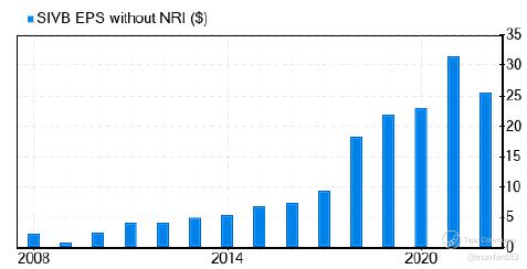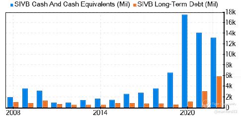 I am showing these charts to show that SIVB is indeed growing and prospering. At one point in time, the cash in hand is more than its long-term debt…