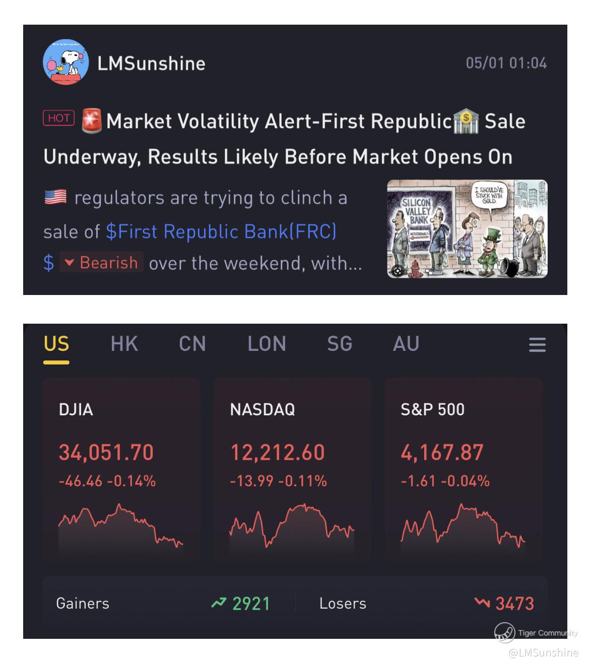 As per my previous post alert, 🇺🇸 trading on 1/5 was volatile & 🐻-ish sentiments pushed throughdue to FRC’s collapse. Some Big 🏦🏦 like $Bank of America(BAC)$