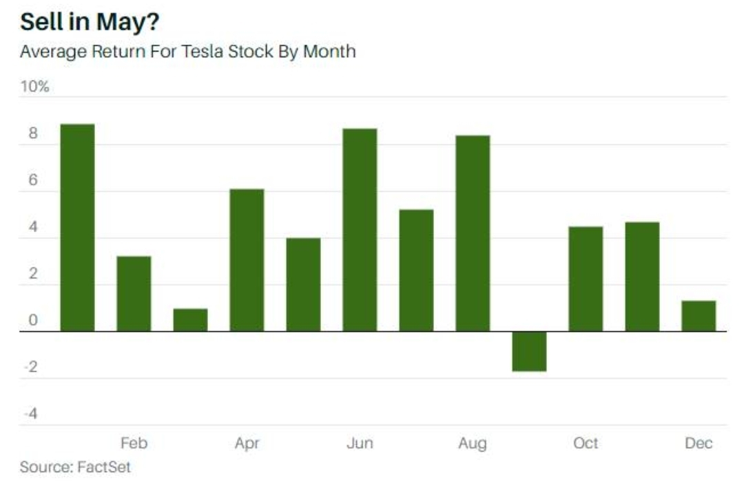 Tesla TSLA +2.57% shares have been on a wild ride lately as investors debate profit margins, price cuts and EV demand. Predicting what’s next is no easy task given all that, plus rising interest rates and persistent inflation. Stock charts and stock seasonality can help investors get a sense of whether or not they should just sell in May and come back and revisit shares later in the year.