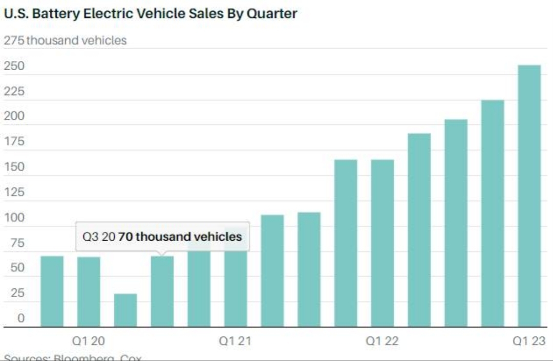 The first quarter of 2023 was a record for battery electric vehicle sales in the U.S. And around the globe, EV sales are up about 50% over the past 12 months, compared with the year ago period.