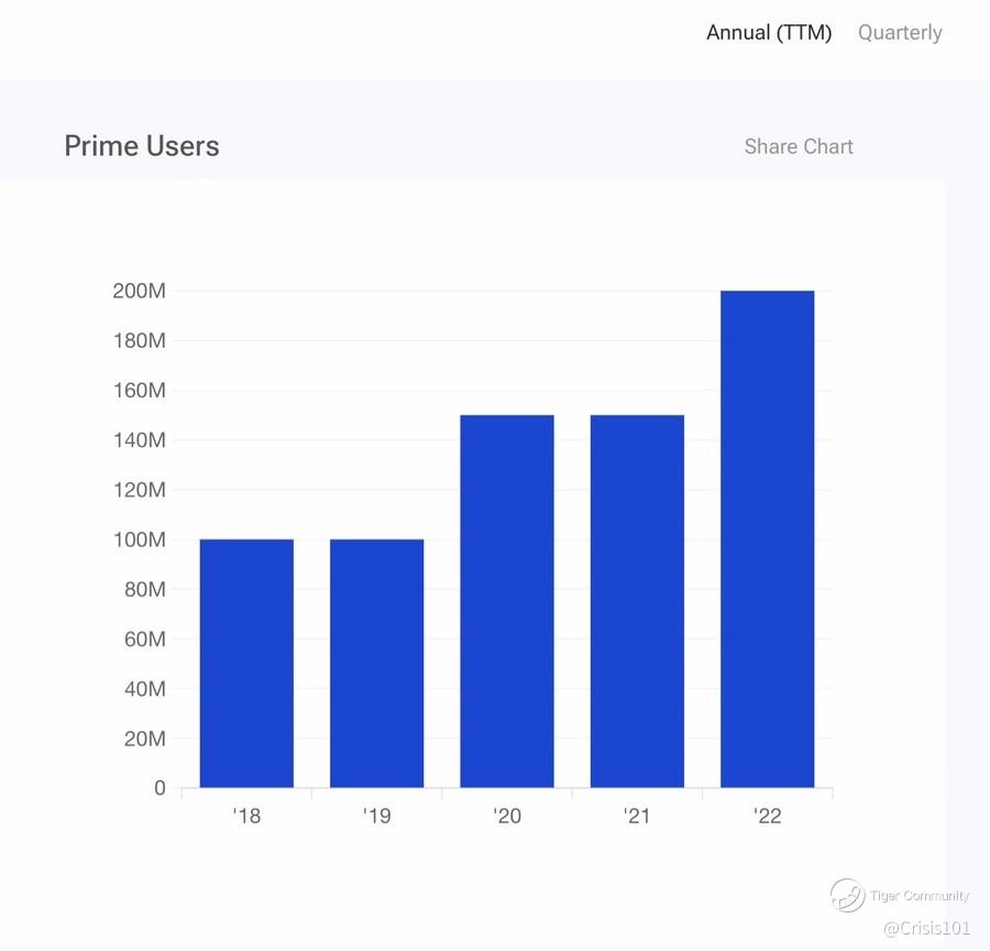 While other streaming media businesses such as Netflix, which is a streaming video-based business, may be facing a period of cost-cutting in the current environment, they may have no choice but to reduce their purchases of film series from movie producers, which may result in a poorer user experience and users may shift to Amazon and Apple for streaming media. Amazon and Apple's streaming services are only a small part of their primary business, and they are well positioned to take advantage of opportunities to expand their streaming user base while other streaming companies face challenging business environments. In recent years, Amazon Prime video subscribers have been growing year after year, while Apple's TV+ seems to have seen little growth in subscriber growth in the last couple of years, but I think it may be able to leverage the momentum of other streamers to grow itself next.