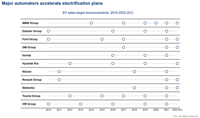 A rapidly developing market with huge growth potential not only attracts new players, but also forces old manufacturers to transform. So, in the EV segment, the company's competitors are not only pure EV manufacturers, such as: Tesla (TSLA), Lucid Group (LCID), etc., but also classic OEM manufacturers that are actively investing in the segment and are going to actively compete with the largest EV manufacturers. You can see the details in the chart below.