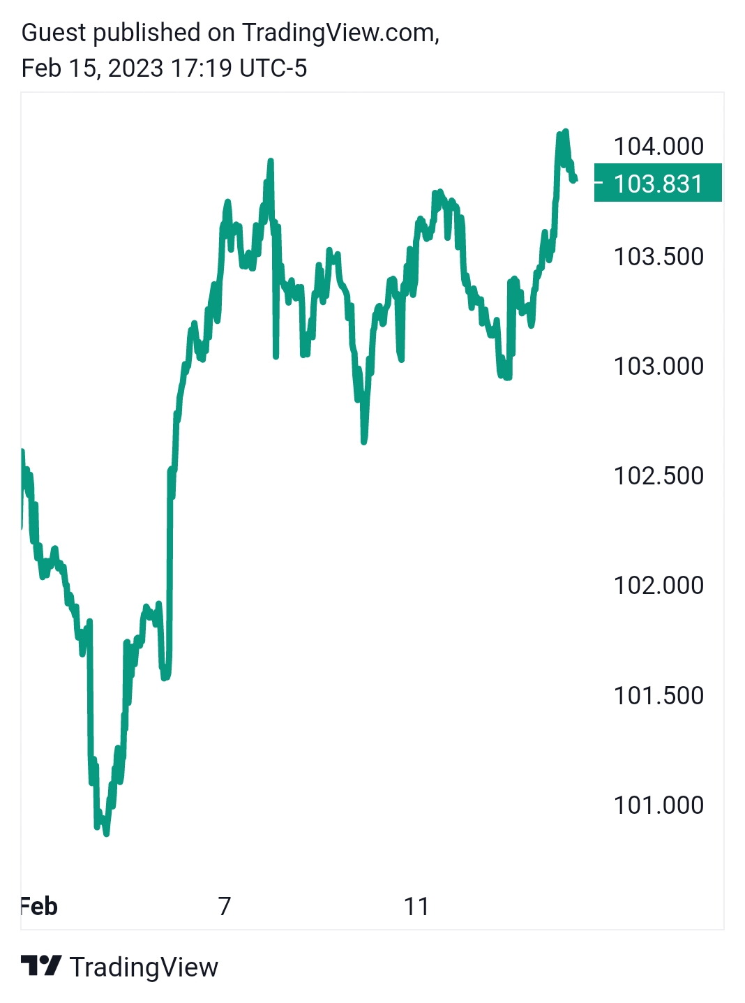 Next we look at the strength of the dollar, a rising dollar generally puts pressure on the stock market. It indicates that investors are becoming more risk-averse and seeking safe haven assets like the U.S. dollar and U.S. Treasury bonds. This can lead to a decrease in demand for riskier assets like stocks, which can also lead to lower stock prices.