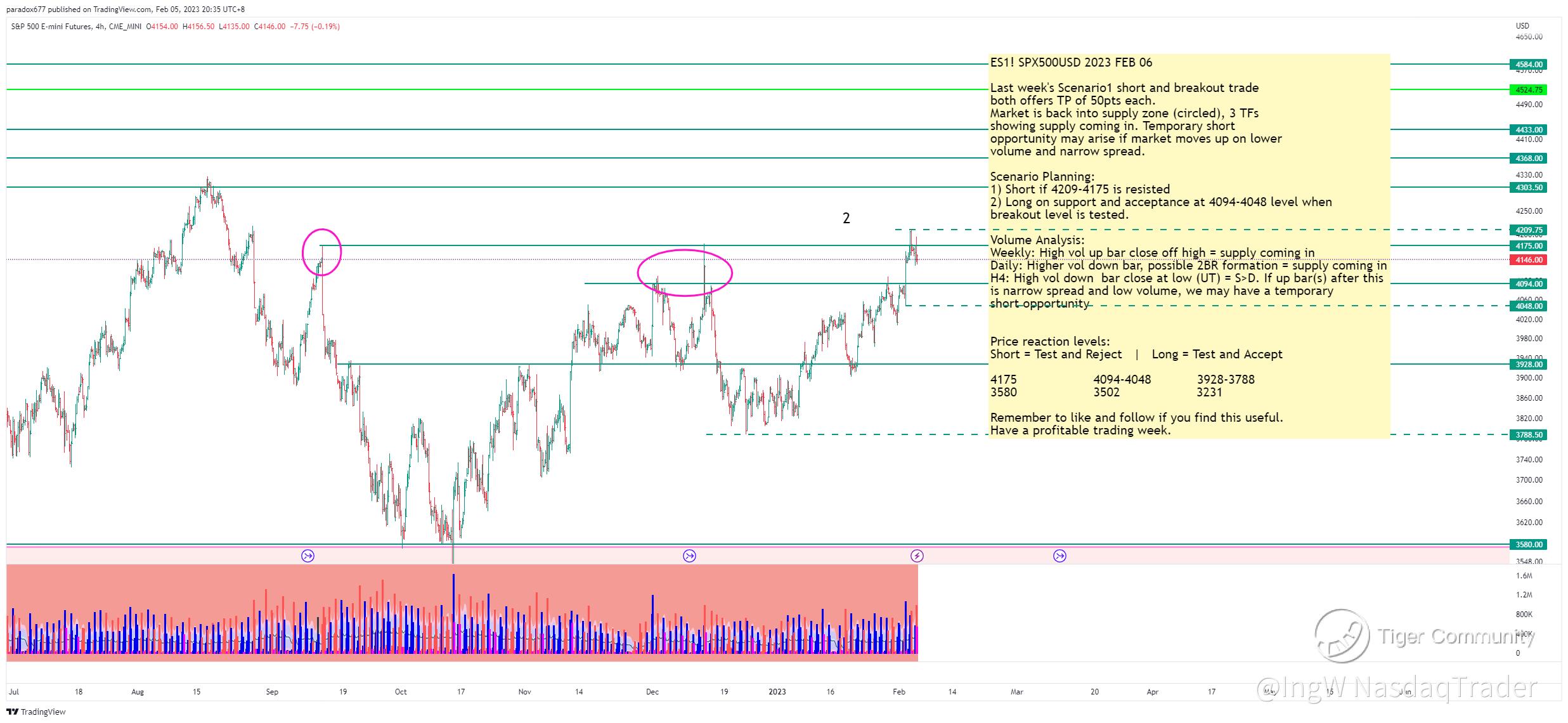 2) Long on support and acceptance at 4094-4048 level when breakout level is tested.
