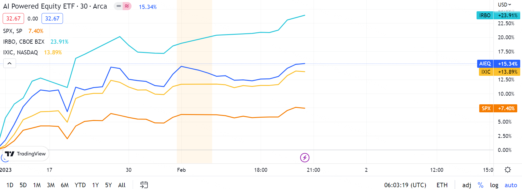 There is aother $iShares Robotics and Artificial Intelligence ETF(IRBO)$ has gained 16.92% in Jan and 21.28% in YTD2023, breezing past the $SPDR S&P 500 ETF Trust(SPY)$ and the $NASDAQ(.IXIC)$ gains.