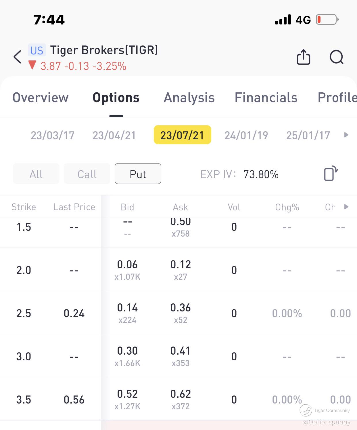 We can also sell put options for tiger for around 0.25 for half a year which is around 10% tiger support is very very strong at $2.50 for the past 1 year plus rarely reaches there . @TigerEvents @Daily_Discussion @TigerStars do feature me