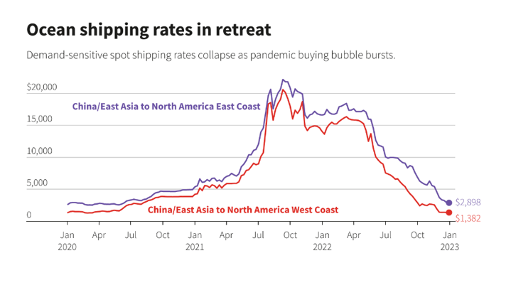 With that said, ocean shipping rates have now returned to pre-Covid levels, and while spot rates may fall further in the short term, I believe the market has made its peace with pricing in a 2023 shipping industry recession.