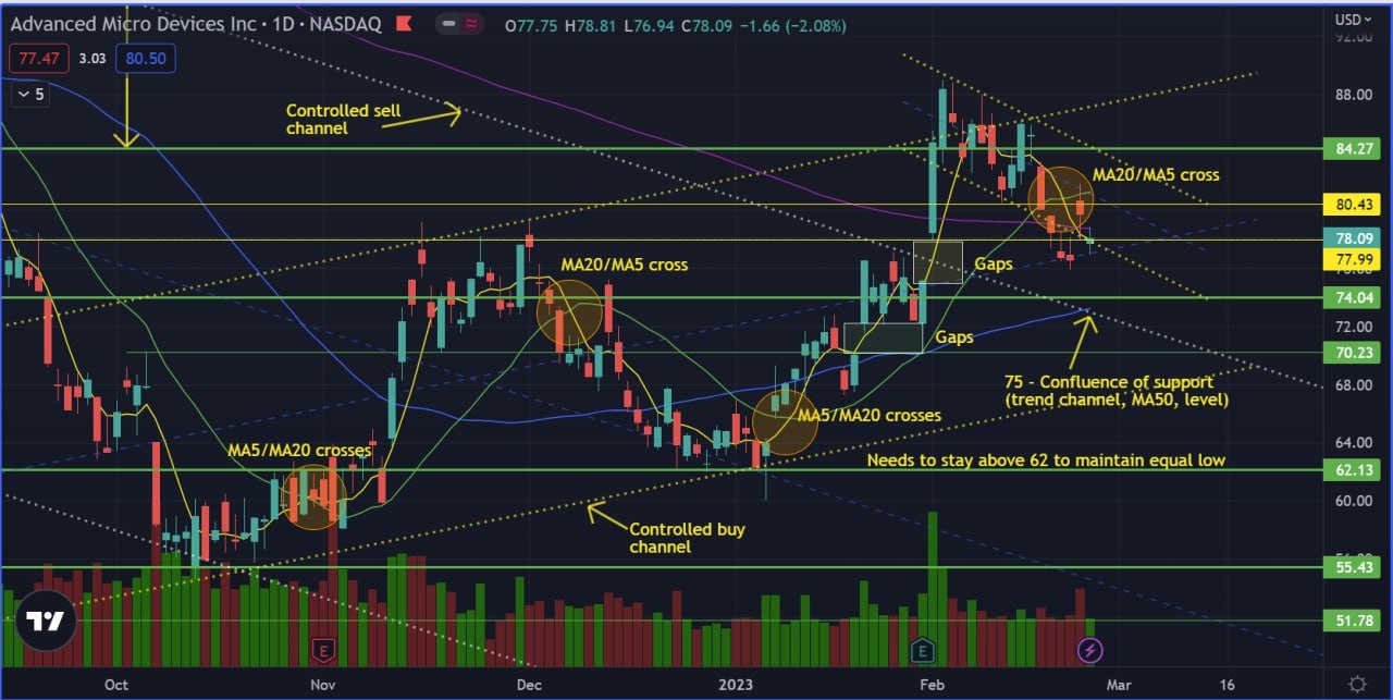 Personally, I will go with the trend channel support of 70 as the support level to go for with a note on equal low at 62. Breaking below 62 is very bearish.