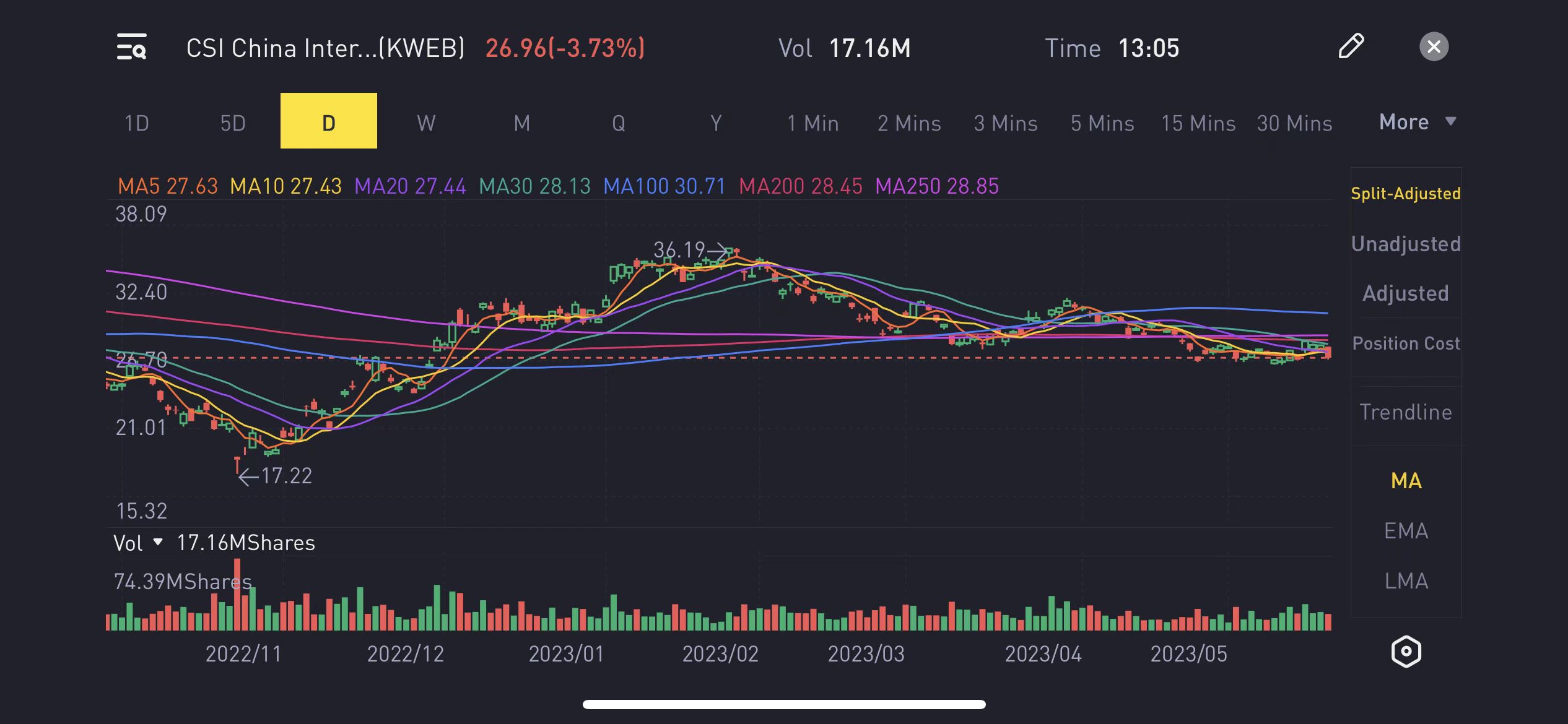 The problem is that KWEB is currently trading at $28, which is also a low support price. sell call28 before September, meaning that the stock before Q4 is difficult to improve.