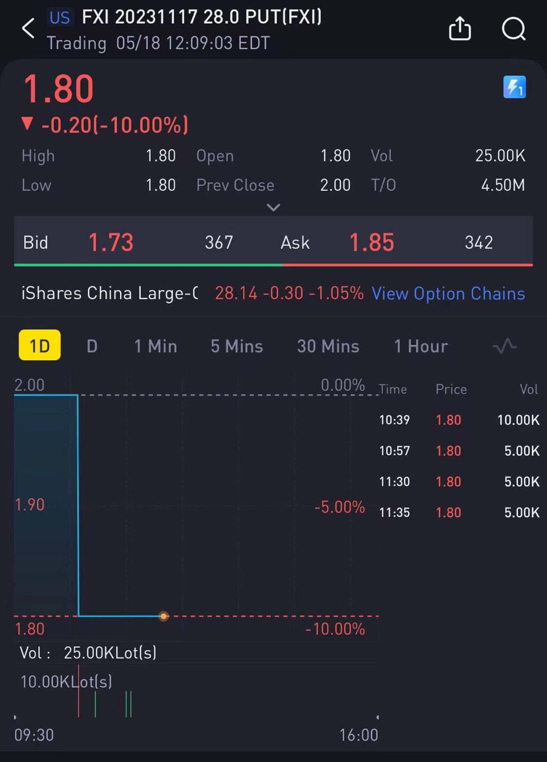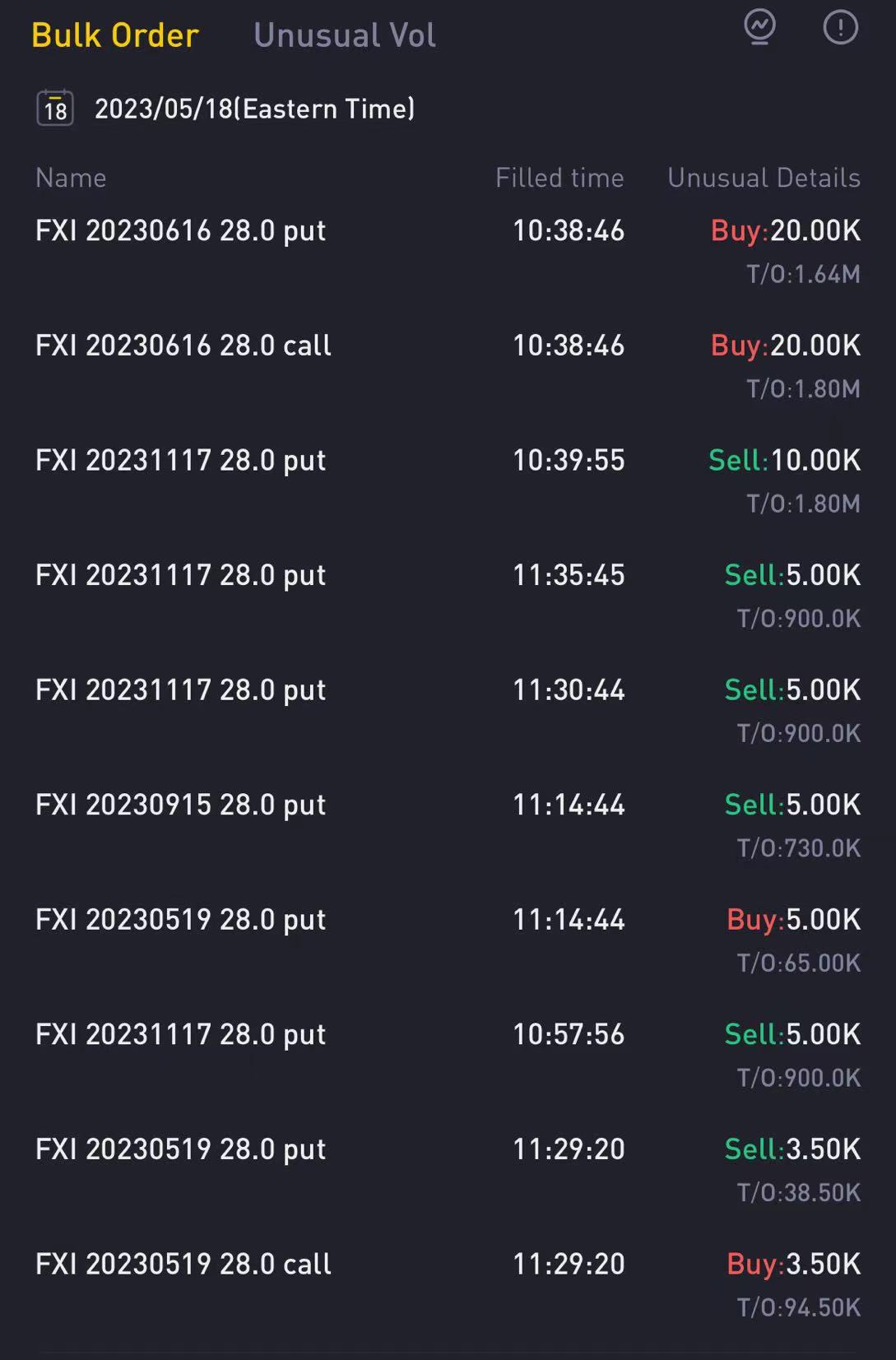 A different program judged this large order to be the seller. In other words, the trader sold the put of FXI with the strike price of 28 and the expiration date was November 17th. By the time of press release, 25,000 lots were traded, and the total transaction amount was about 4.5 million.