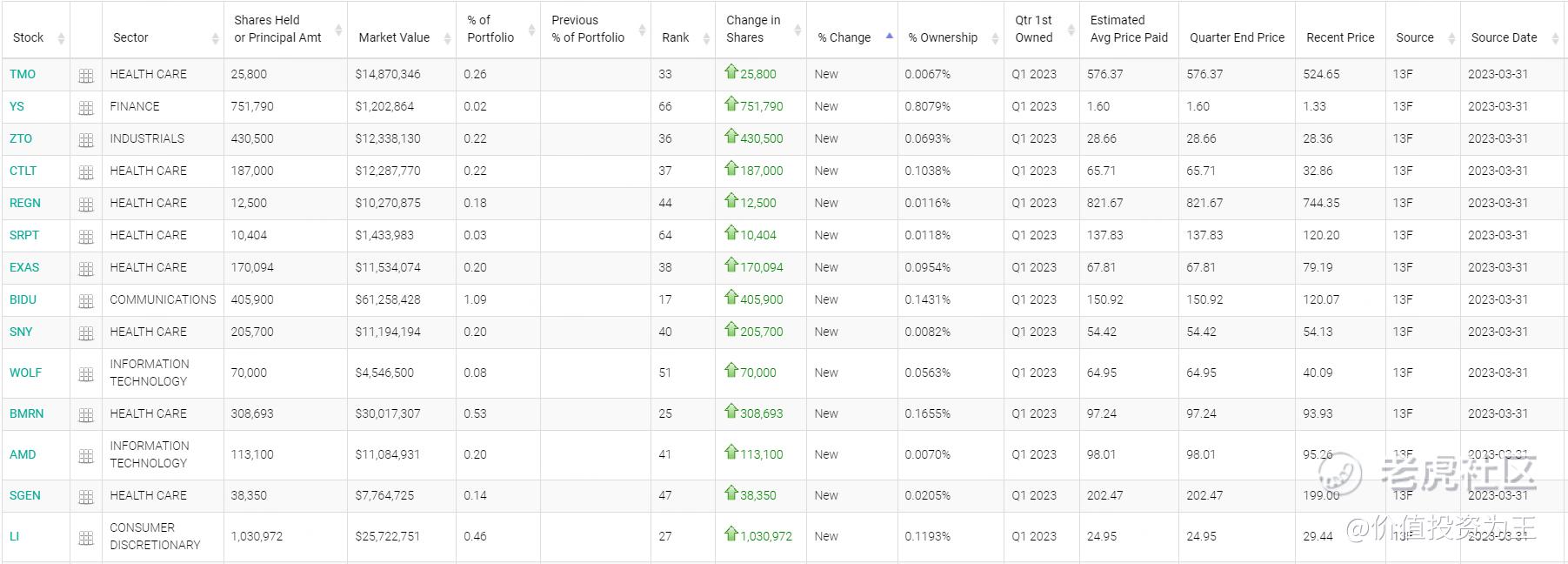 Hillhouse built 14 stocks in the first quarter, of which Baidu $Baidu(BIDU)$ $BIDU-SW(09888)$ bought the largest amount. The other stocks had a small market capitalization, and they had little significance to investors: