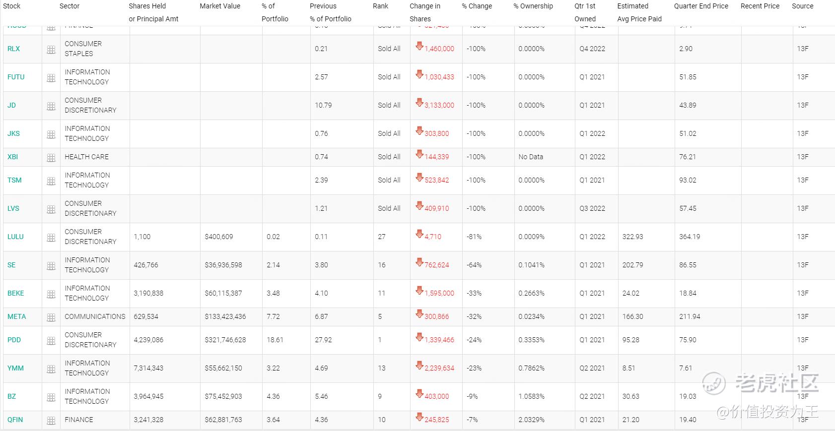 Among the stocks reduced, it is worth paying attention to the liquidation of Futu $Futu Holdings Limited(FUTU)$ , JD.com and TSMC $Taiwan Semiconductor Manufacturing(TSM)$ , as well as large-scale reduction of Pinduoduo, Beike and other companies: