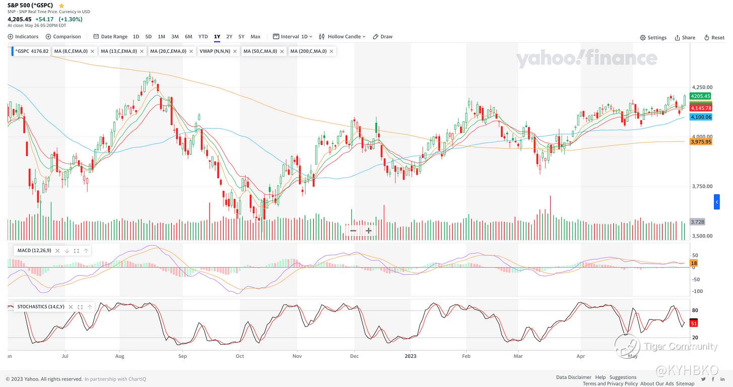 While the technicals point to a likely uptrend, there could still be volatility coming from the debt ceiling. Let us exercise caution.