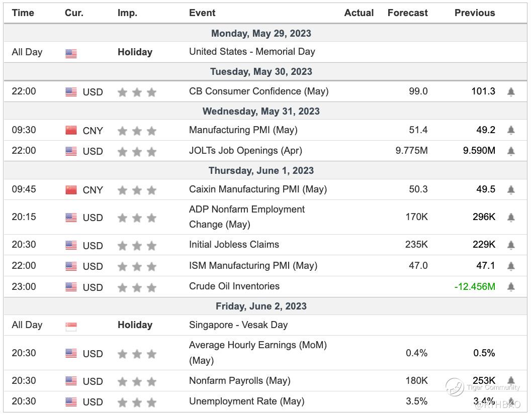 Economic Calendar starting 29 May 2023