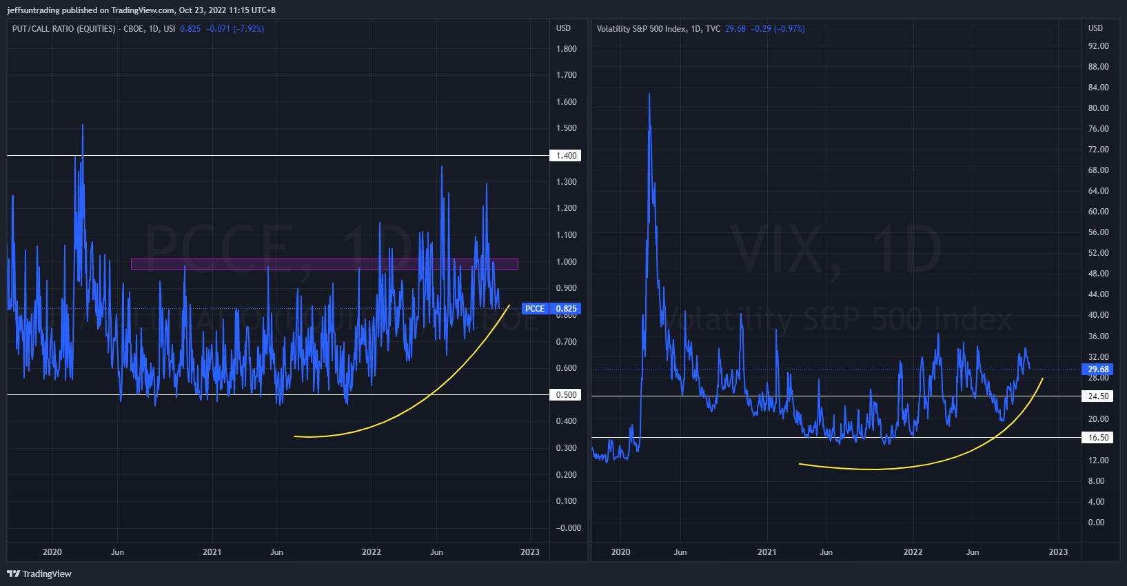 $PCCE (Put/Call Ratio Equity) & $VIX (Volatility S&P 500) – Persistence in Reflection of Imminent Major Sell Off Ahead