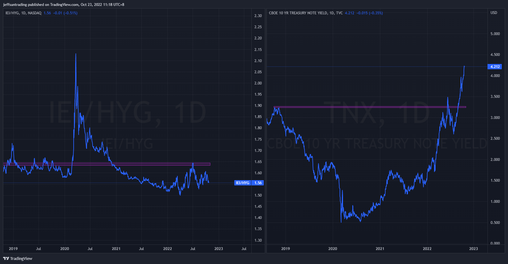 $IEI/$HYG (Credit Spread) & $TNX (10YR Treasury Yield) – 10-Year US Treasuries Yield On Track For Year Till Date High