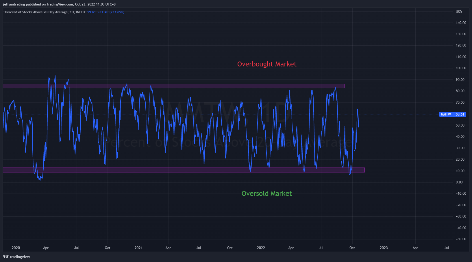 % of Stocks Above 20 DMA = 59.61% (+70.80%)