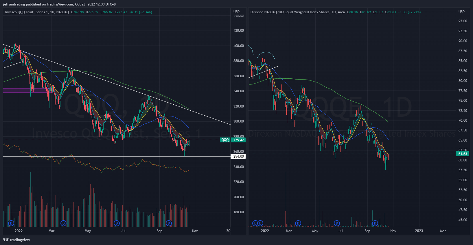 $Invesco QQQ Trust(QQQ)$ $Direxion NASDAQ 100 Equal Weighted Index Shares(QQQE)$