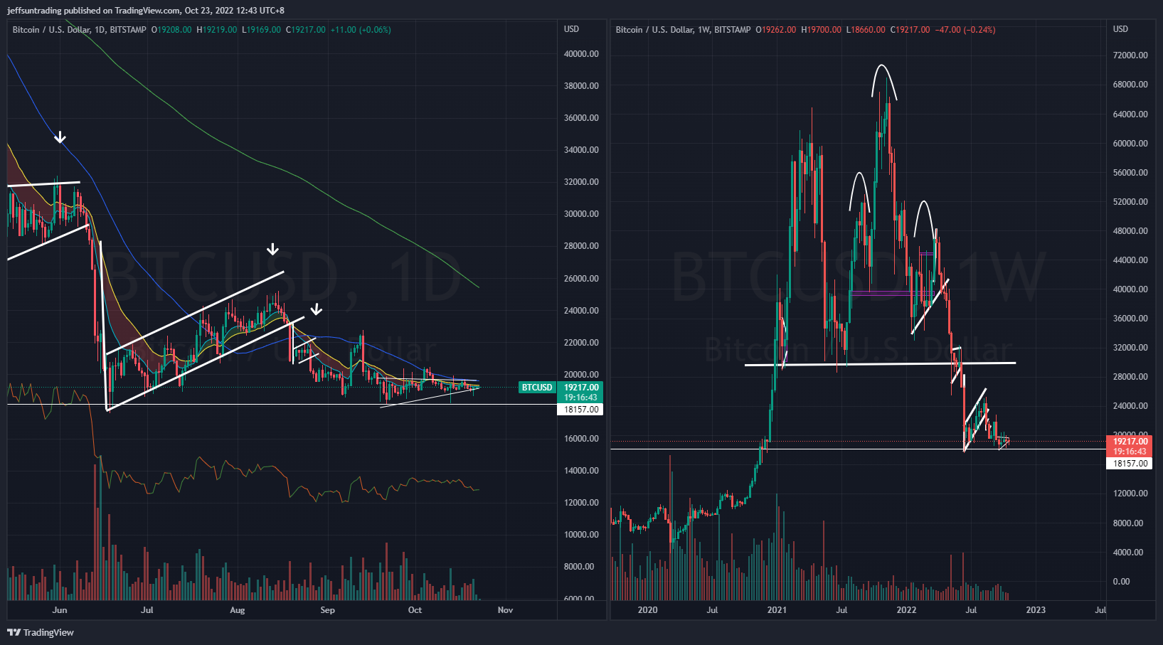Bull Case: Reclaim above its existing 50-day moving averages at $20,000.