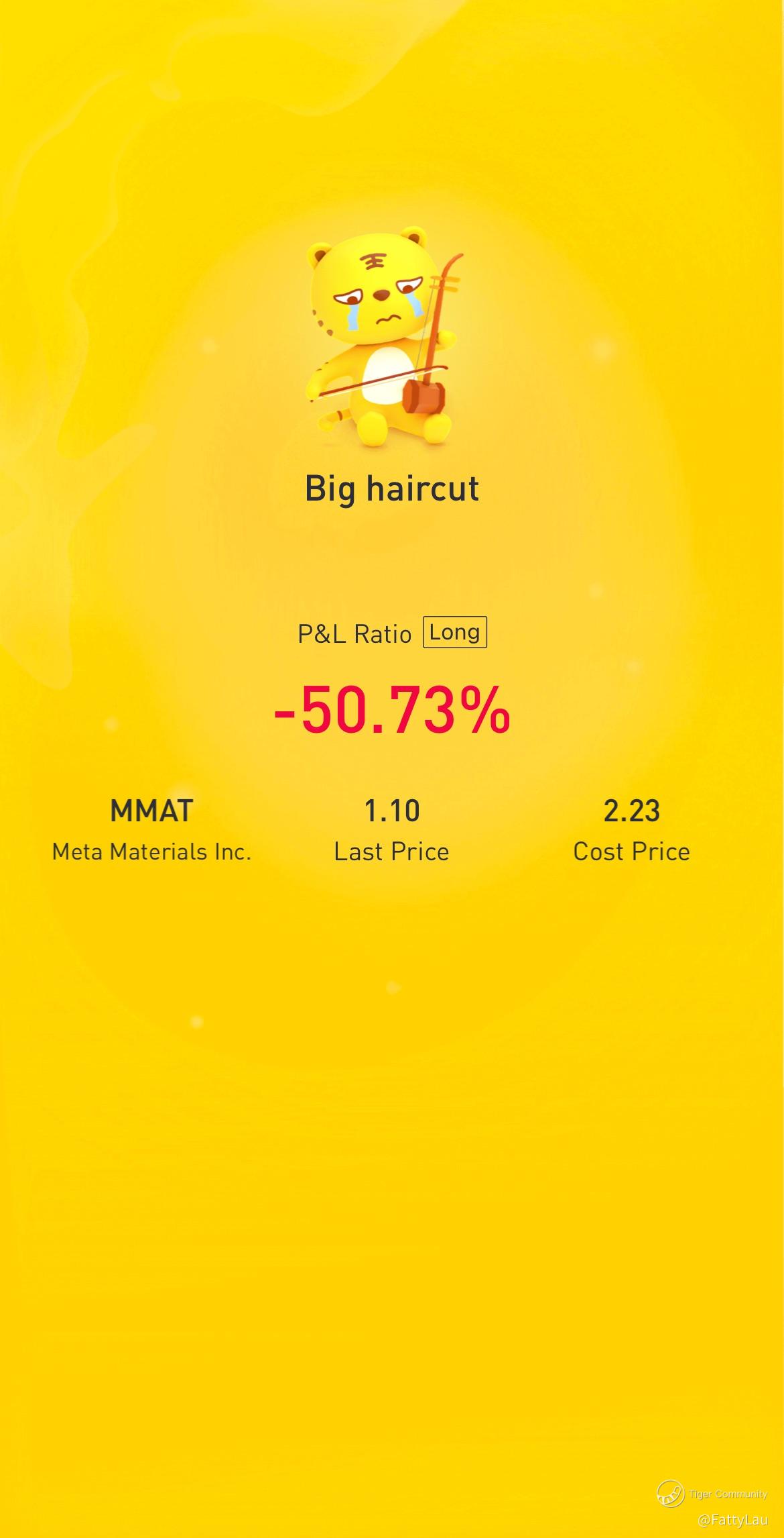 $Meta Materials Inc.(MMAT)$The stock price will continue to up at this rate and my averageprice will continue to reduce at this rate. Cannot hold back last night and buy in some more. Even though bought in at 1.13, but that doesn'tmatter as I know this stock is at least minimum $50 (Non Financial Advise). Reason is I have been following this company and the PR is getting better and better.