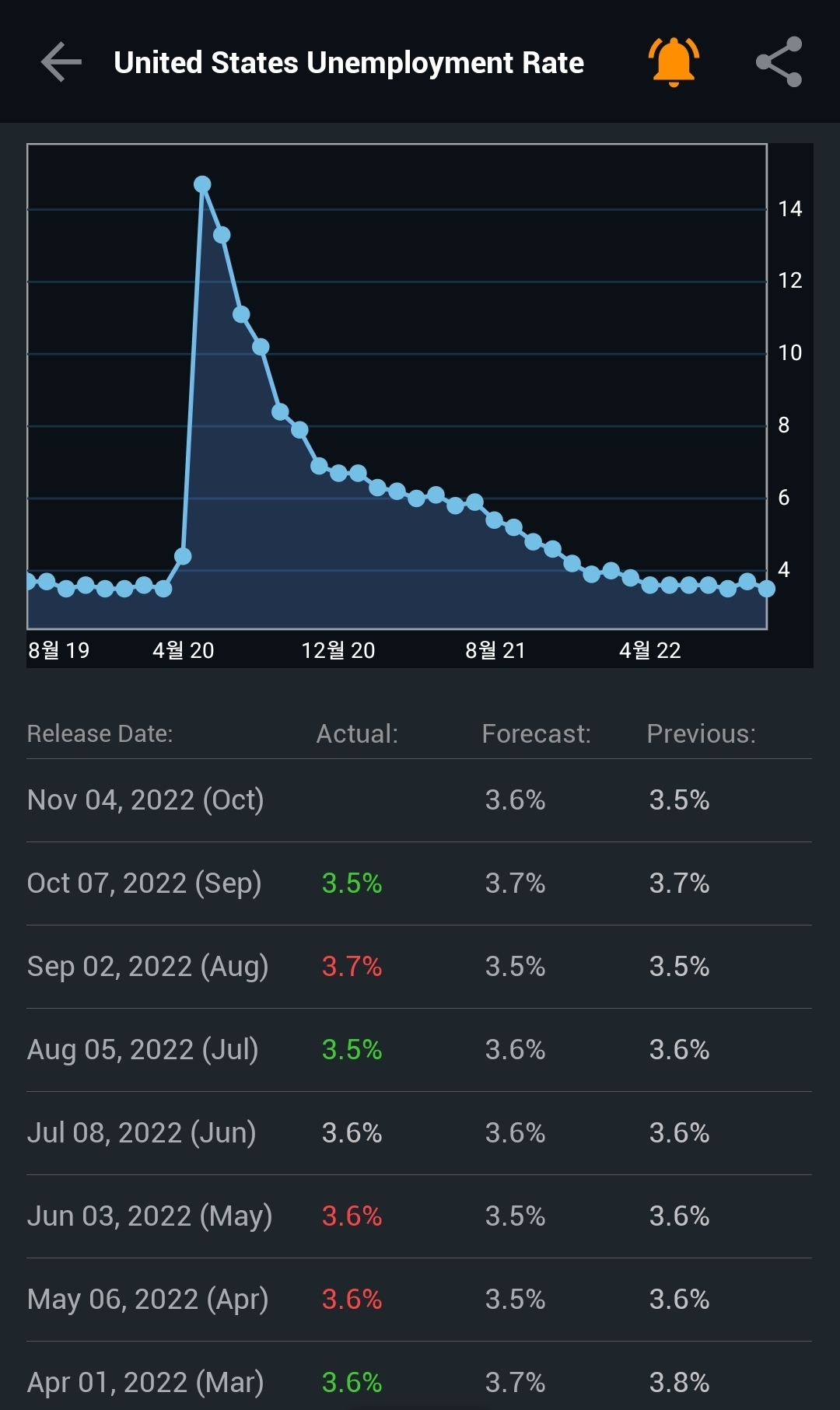 The unemployment rate is released today at 8:30 AM U.S. time. When it is higher than the forecast (3.6%), it acts as a good news for the stock market, and when it is lower than the forecast (3.6%), it acts as a bad news.
