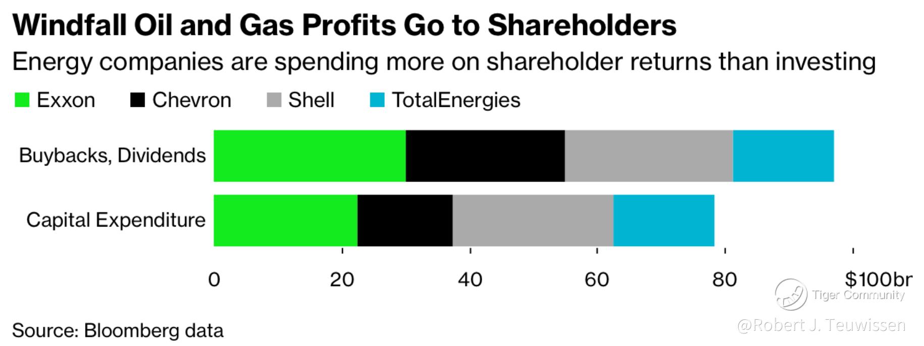Russian oil production is also doomed to fall rapidly. See the example of Venezuela where oil production fell from 4 million barrels a day to 500,000 barrels a day. The only reason was the departure of foreign oil companies. Without Western technology from Schlumberger and Halliburton, oil production may fall even faster in Russia than in Venezuela. Indeed, the harsh Russian winter has little respect for Western components. In addition, in the US, shareholders steer towards returns in the form of dividends and share buybacks. Reinvestment is discouraged.
