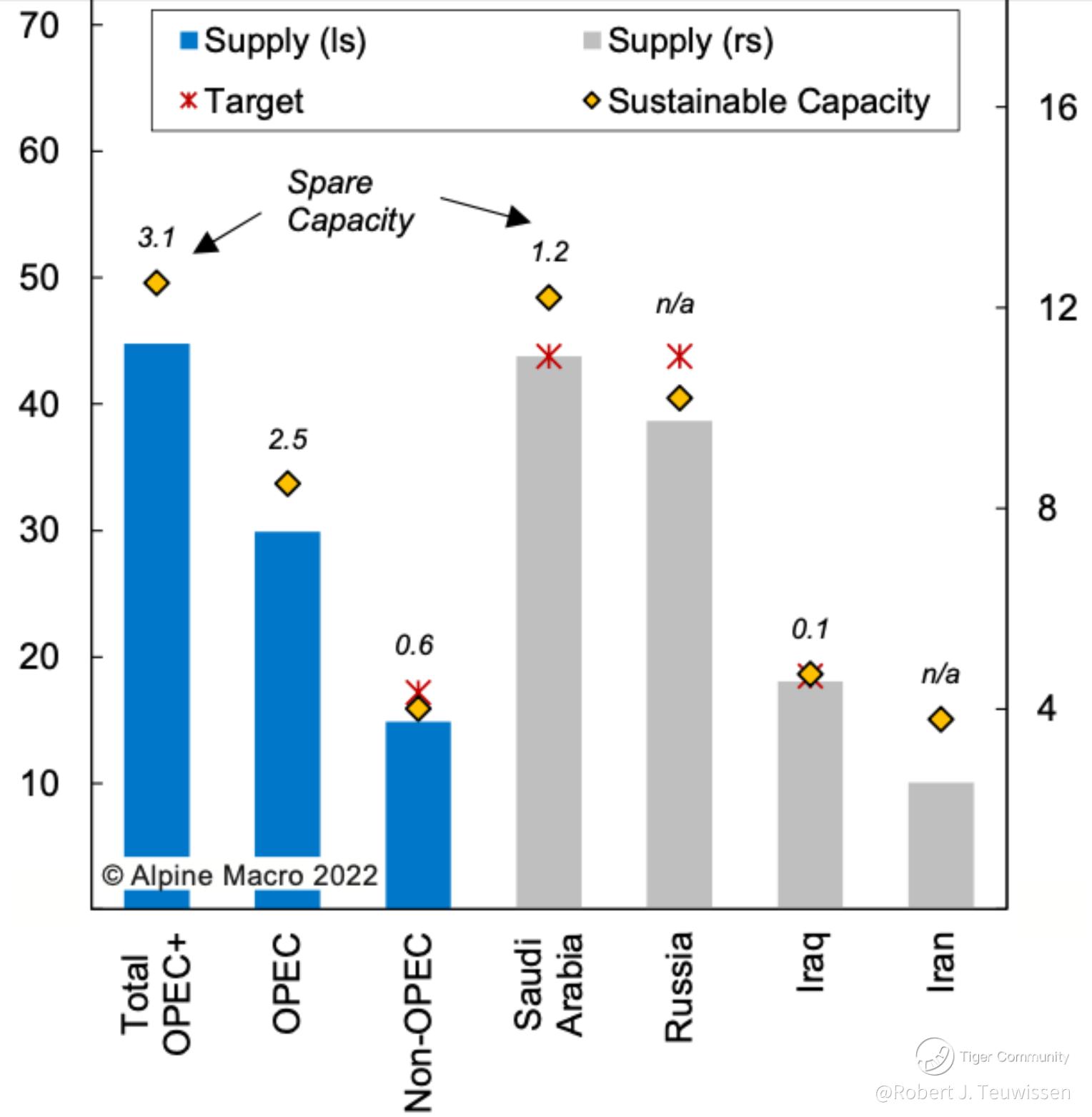 Against the rising demand for energy, including fossil fuel energy, there is remarkably a shrinking supply. Now there is plenty of oil in the world, but as far as exploration is concerned, the low-hanging fruit has now been picked. It will become increasingly expensive to extract oil. There are three main producers in the world: Saudi Arabia, Russia, and the United States. By far the cheapest oil to produce still comes from the Arabian Peninsula, but they are starting to hit the limit. Recently OPEC reduced production by 2 million barrels a day, but before that, there were growing doubts about whether OPEC (read Saudi Arabia) would be able to produce an additional 2 million barrels.