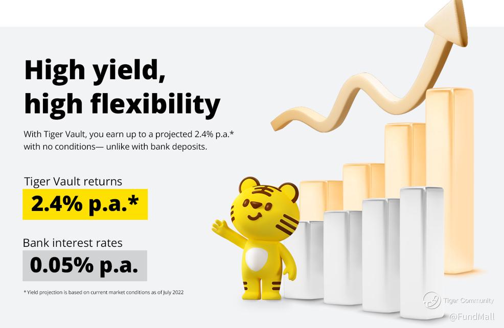 Finally Tiger Vault is here! Wow! 2.4% interest! That's a great interest rate to park our spare cash. Thanks @FundMall . I can't wait to try it.