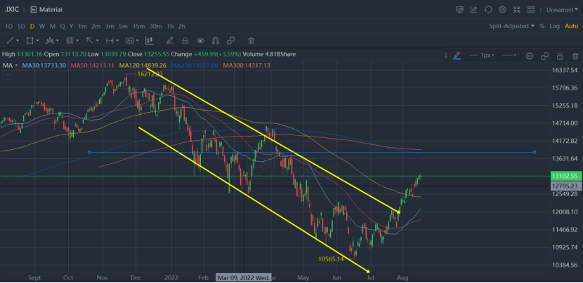 The $NASDAQ(.IXIC)$ rose above the downside corridor and began its upside move.